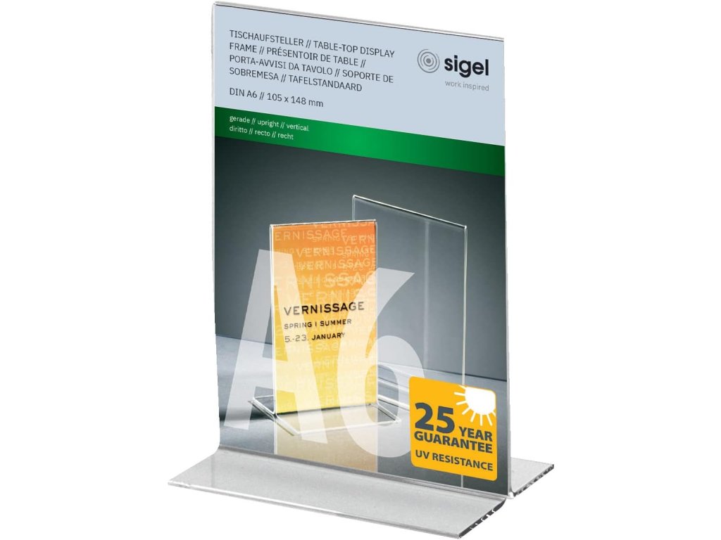 Sigel TA226, Akrylový krystalicky čirý stojánek na letáky typu T - formát A6 na výšku