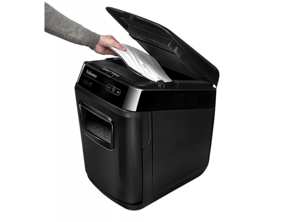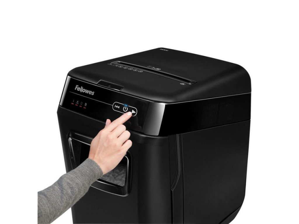 - Snadné použití – stačí vložit dokumenty do podavače, stisknout tlačítko skartování, a můžete se vrátit zpět ke svým povinnostem – stroj udělá zbytek za Vás