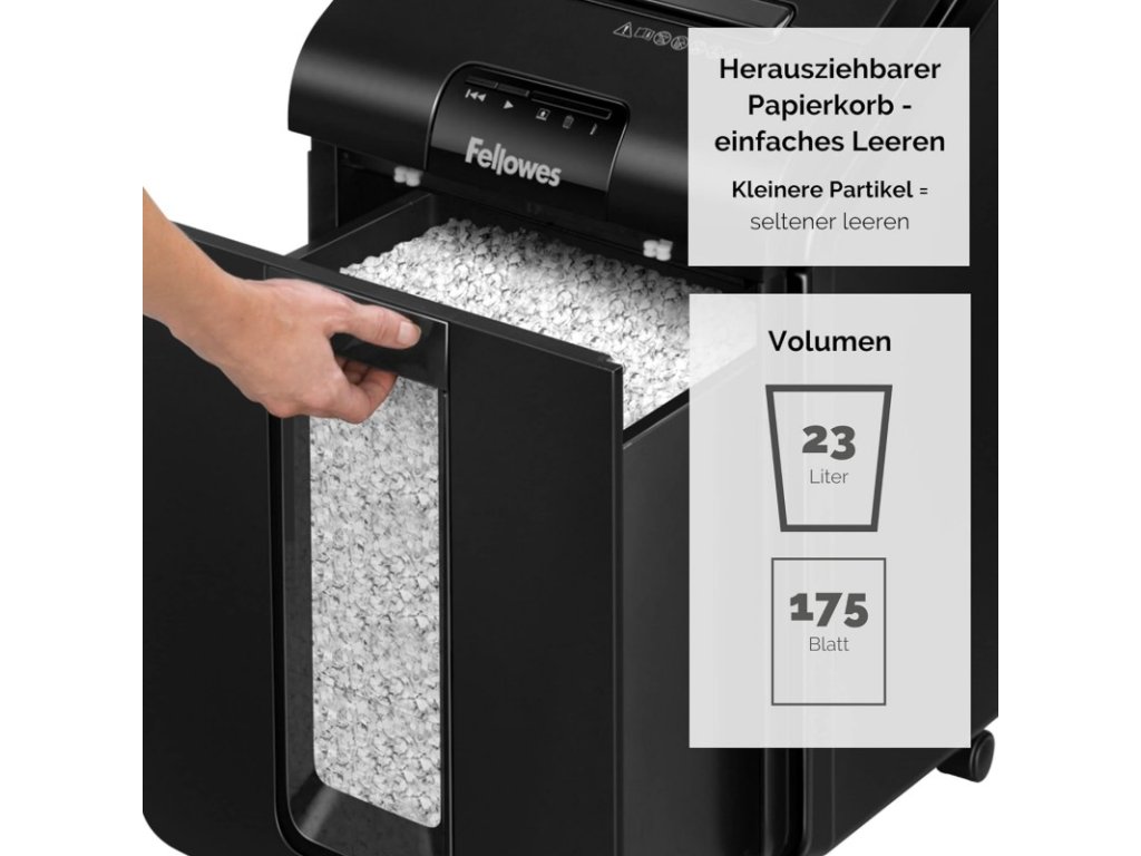- Objem koše ve skartovaném papíru 175 listů / 80g papíru