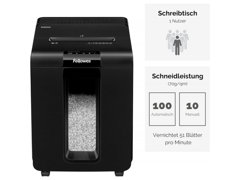 Skartovač Fellowes AUTOMAX 100M, křížový mikrořez 4x10 mm, pro 100 listů