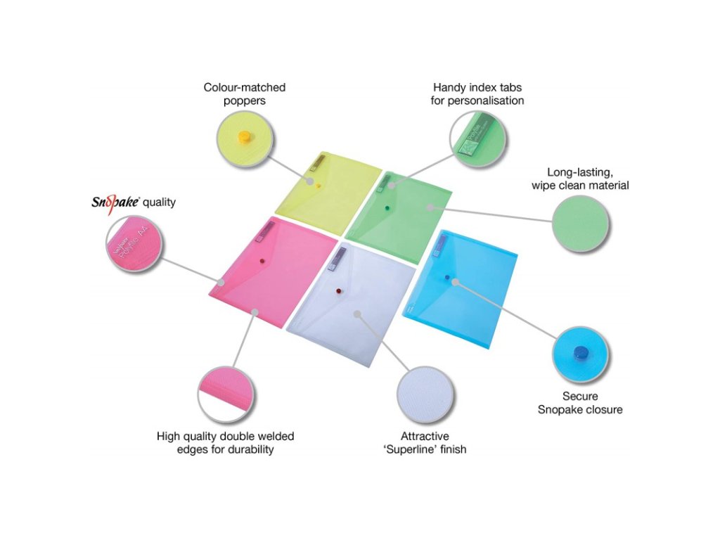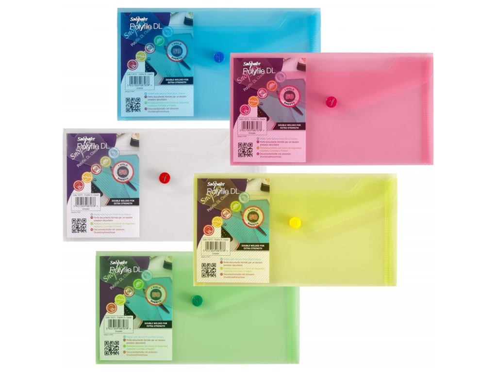 Snopake Polyfile Classic, obálka s drukem DL PP průhledná, psaníčko, mix barev 5ks