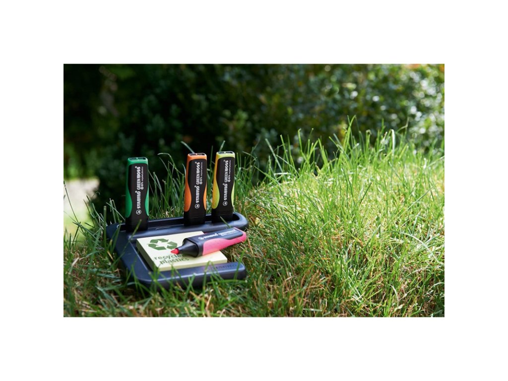 - Mimochodem: víte, že STABILO má společný projekt recyklace s firmou Coca Cola? Plast "procyclen", který se používá k výrobě zvýrazňovačů STABILO GREEN BOSS, je vyroben z recyklovaných šroubových uzávěrů Coca Cola. Tento proces šetří až 50 % emisí skleníkových plynů.