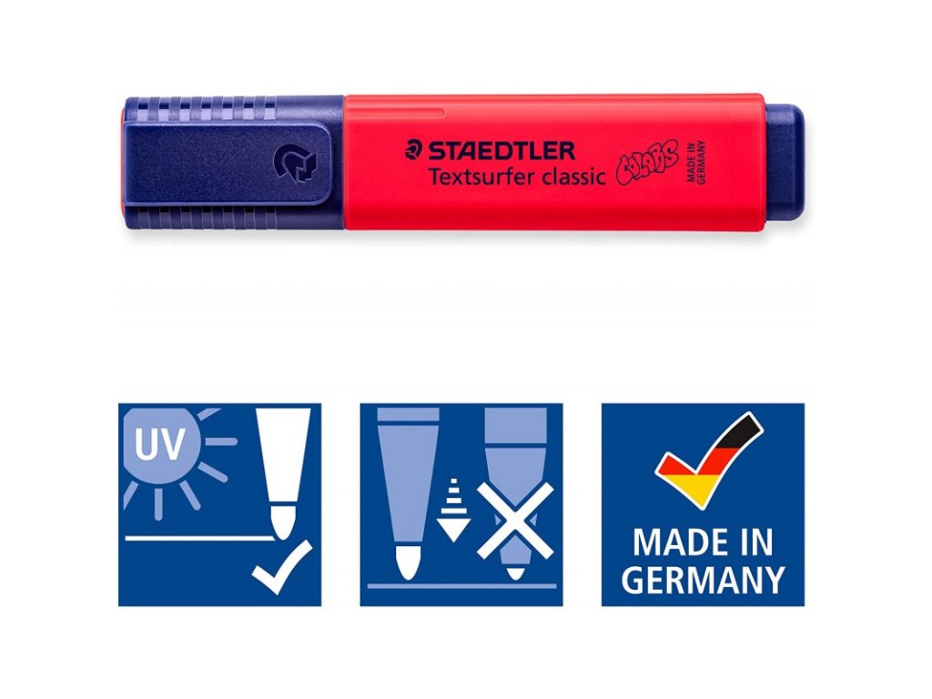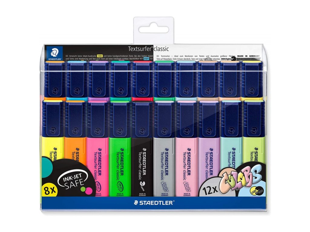 - STAEDTLER Textsurfer Classic Highlighter, Large Ink Storage, Dries in Seconds, Approx. 1-5 mm Chisel Tip, Refillable, Ink Jet Safe, 20 Highlighters in Case