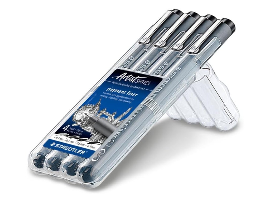STAEDTLER fineliner 308 černý, sada 4 ks, stopa 0,1–0,7 mm, stojánková krabička