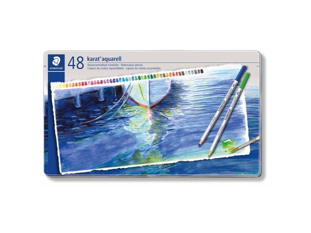 Staedtler karat aquarell 125, profesionální sada pastelek akvarelových, 48 barev, kovová krabička