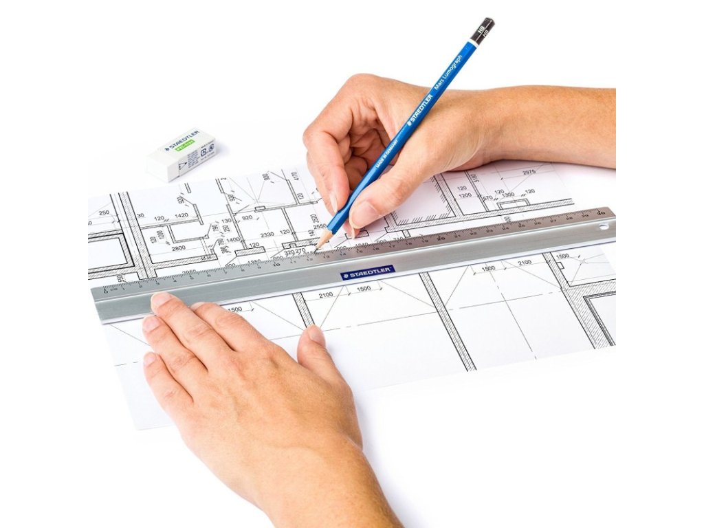 - Hliníkové pravítko STAEDTLER Mars® 563 je opatřeno inkoustovým okrajem barvy, který umožňuje vytvářet čáry i s perem bez rozmazání čáry na papíru.