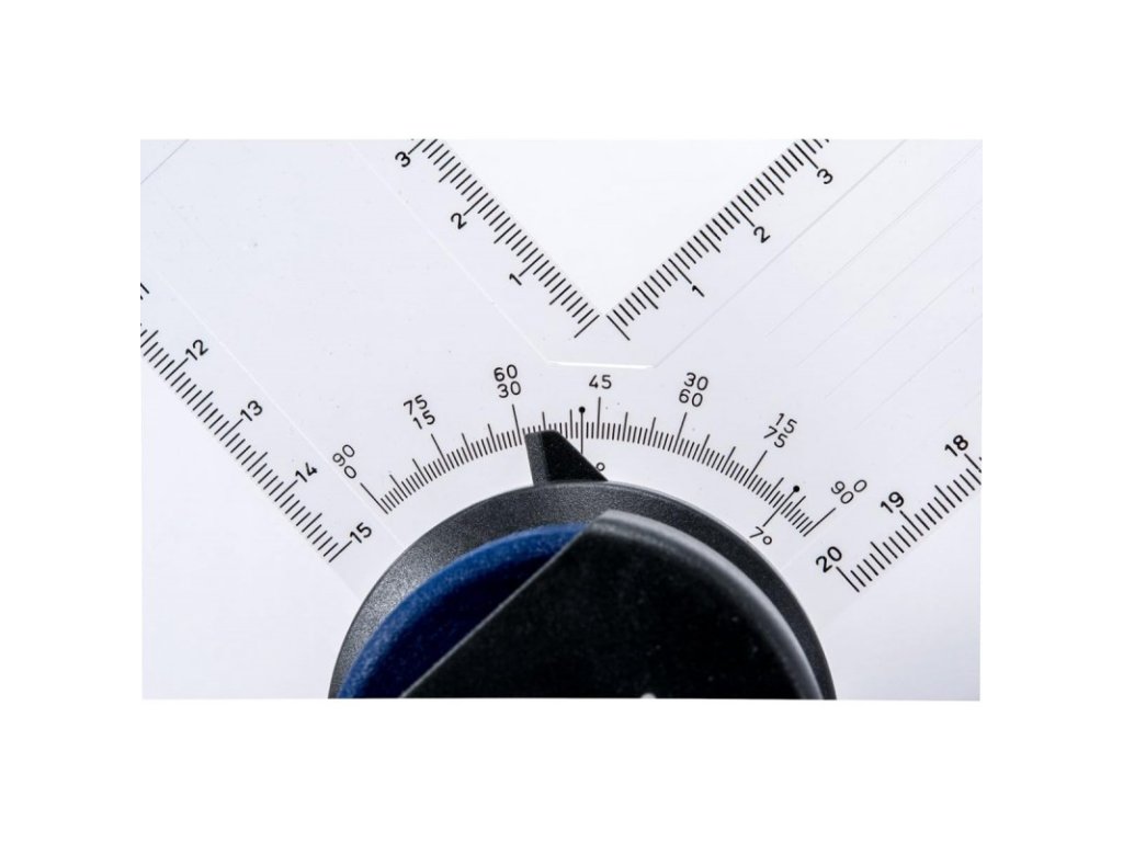 - Protiběžné úhloměry se stupnicemi od 0° do 90° s přídavnými značkami 7° a 42° pro dimetrické promítání