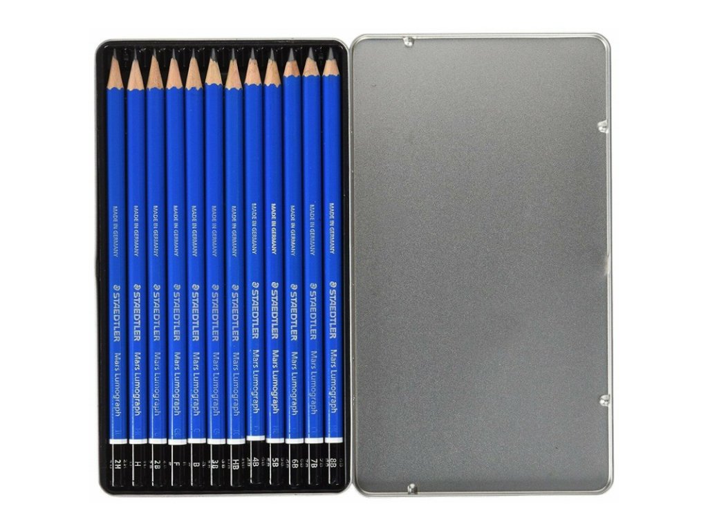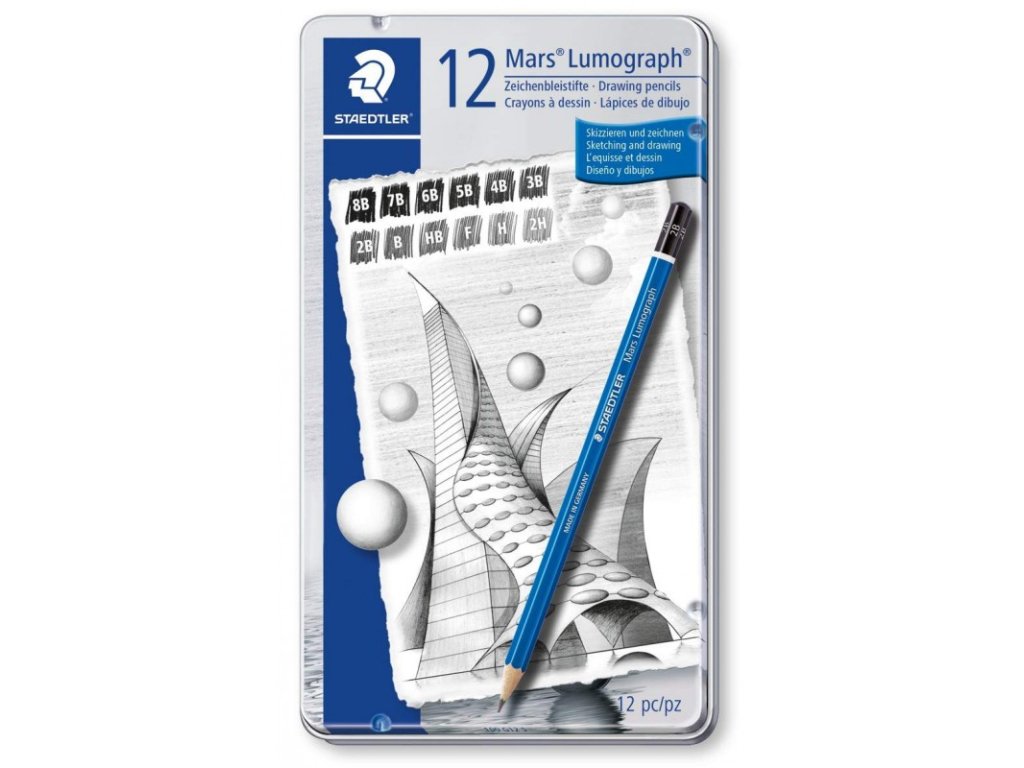 Staedtler Mars Lumograph 100, sada tužek 12 různých tvrdostí, v kovové krabičce