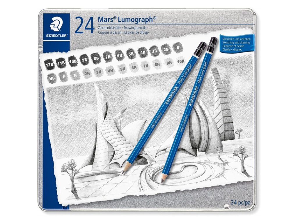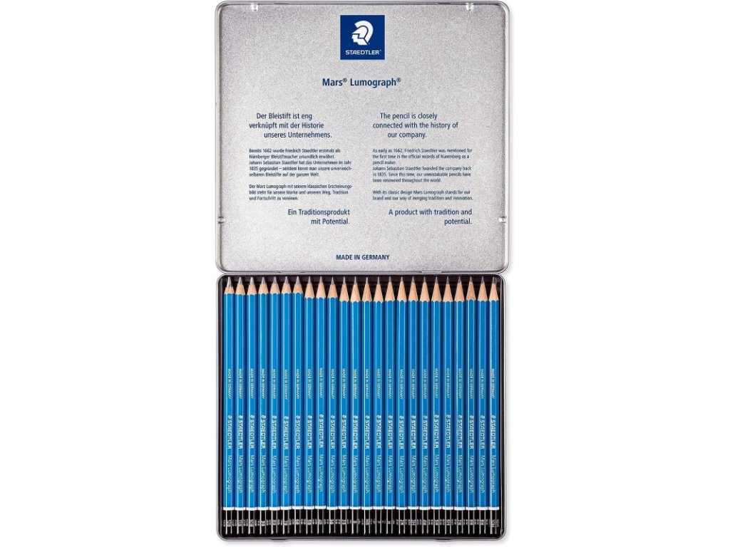 Staedtler Mars Lumograph 100, sada tužek 24 různých tvrdostí, v kovové krabičce