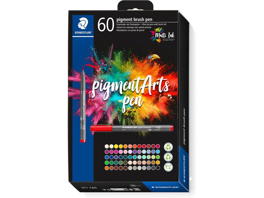 STAEDTLER Pigment Brush Pen – štětcové fixy s pigmentovým inkoustem Multi Ink, sada 60 ks (371 C60)