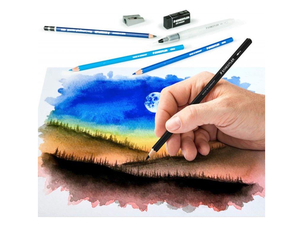 - Mars Lumograph aquarell 100A pro načrtnutí siluet uměleckého díla a rychlé skrytí ve spojení s vodou