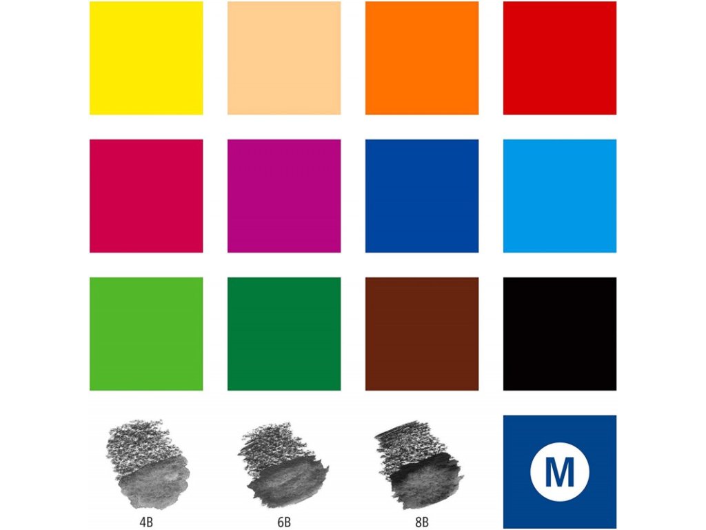 - 146 10C tužky na vodorozpustnost s extra měkkým tahem vytvářejí ohromující jasné efekty a řadu jasných barev s vodou a štětcem