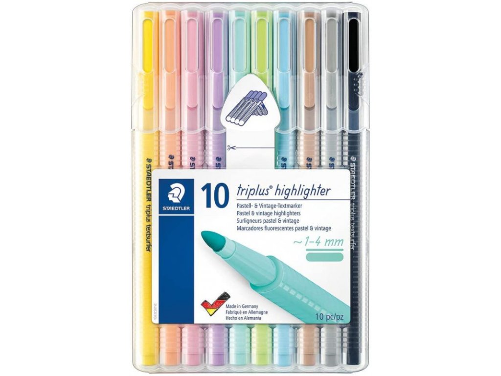 - Sada zvýrazňovačů "Triplus Textsurfer", 10 různých barev, 1-4 mm, STAEDTLER