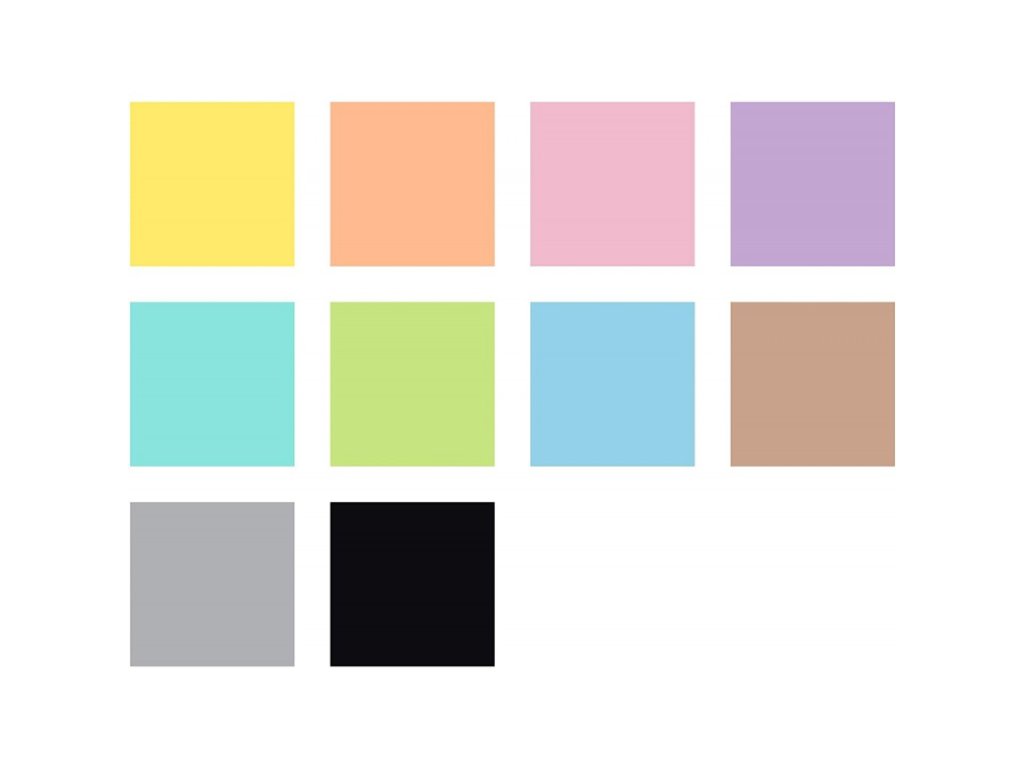 - Barvy: 10 různých pastelových barev