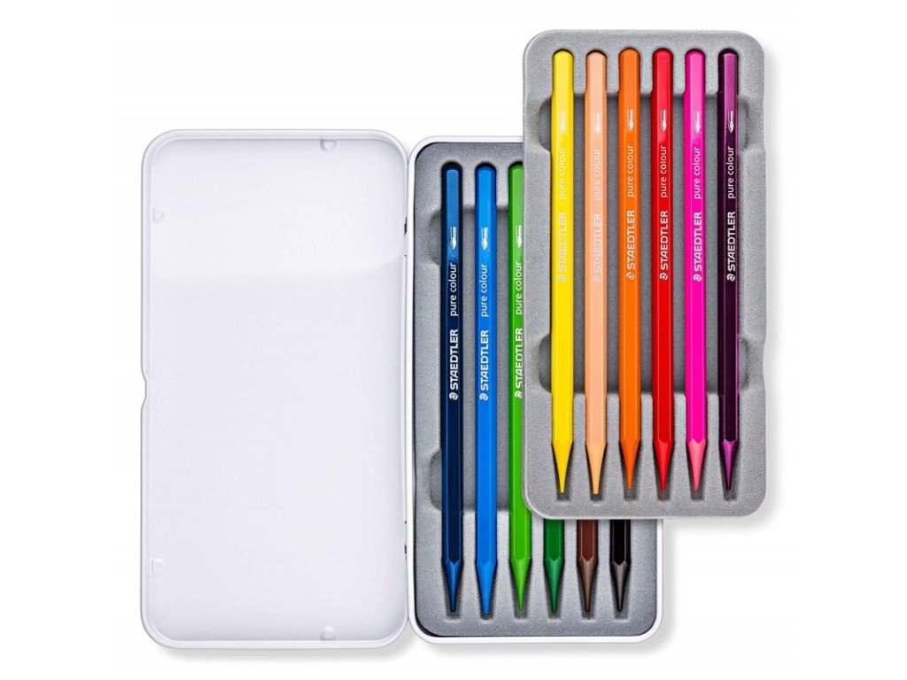 Staedtler Watercolour, sada pastelek vodových a akvarelových, 12 barev, kovová krabička