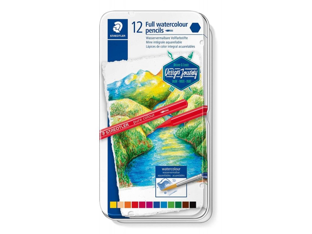 - Staedtler Akvarelové pastelky v laku "Design Journey", 12 různých barev, sada, šestihranné