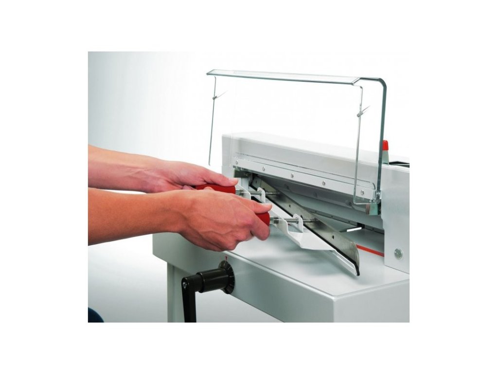 - snadná a bezpečná výměna nože z přední strany bez nutnosti sundání krytů řezačky