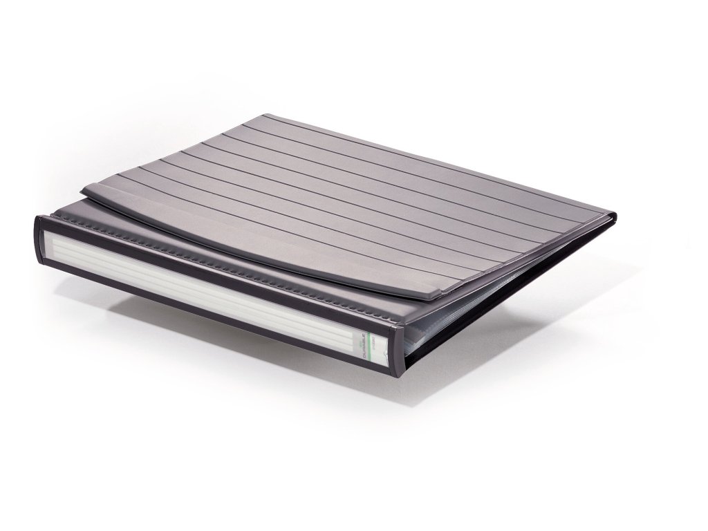 Model DURASTAR 8567 je určen pro formát A4 na šířku a lze jej rozšířit o dalších cca 20 kapes (výrobek 8566). Na zadní straně se nachází tenká plastová stěna s popisovacím štítkem určeným pro označení projektu či prezentace.
