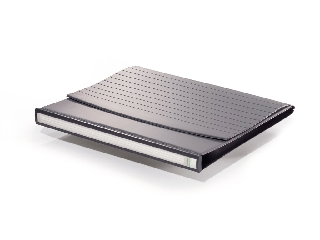 Přístroj lze rozšířit o dalších až 20 kapes (č. výr. 8577) pro větší objem prezentací. Na zadní straně je umístěna tenká plastová zadní stěna s popisovacím štítkem, což usnadňuje označení nebo třídění dokumentů. Flipchart je navržen pro formát A3 na šířku, díky čemuž poskytuje vynikající vizuální prostor pro grafy, tabulky a schémata.