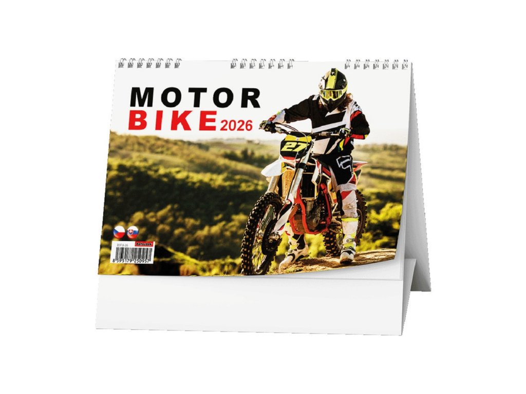 - Natankujte rok 2026 pořádnou dávkou adrenalinu! Stolní kalendář Motorbike 2026 je splněným snem pro všechny milovníky motorek. Každý týden přináší dechberoucí fotografie – od terénních endur až po silniční superbiky.