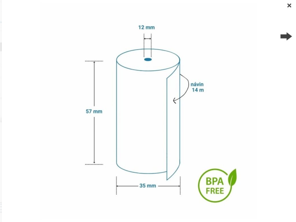 - Termo kotouček s typovým označením 57/35/12 má návin 12 metrů a skutečný průměr 32 mm při 48 g/m2.
