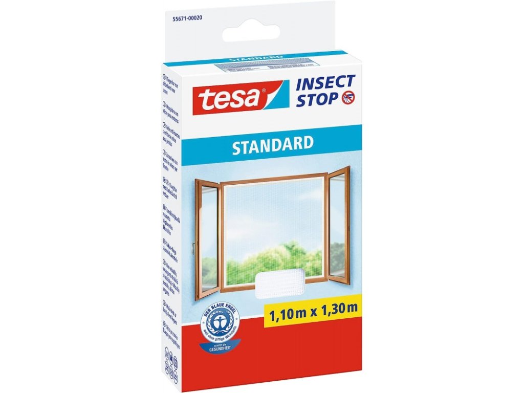 tesa Insect Stop, Síť proti hmyzu "55671", do oken, 110x130 cm, na suchý zip, bílá