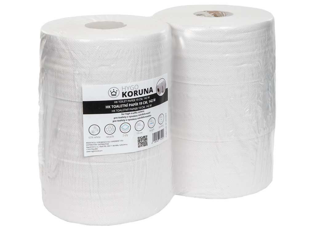 - 2-vrstvý bílý toaletní papír z recyklu. Vhodný do všech provozů. Ekonomická kvalita za diskontní cenu.