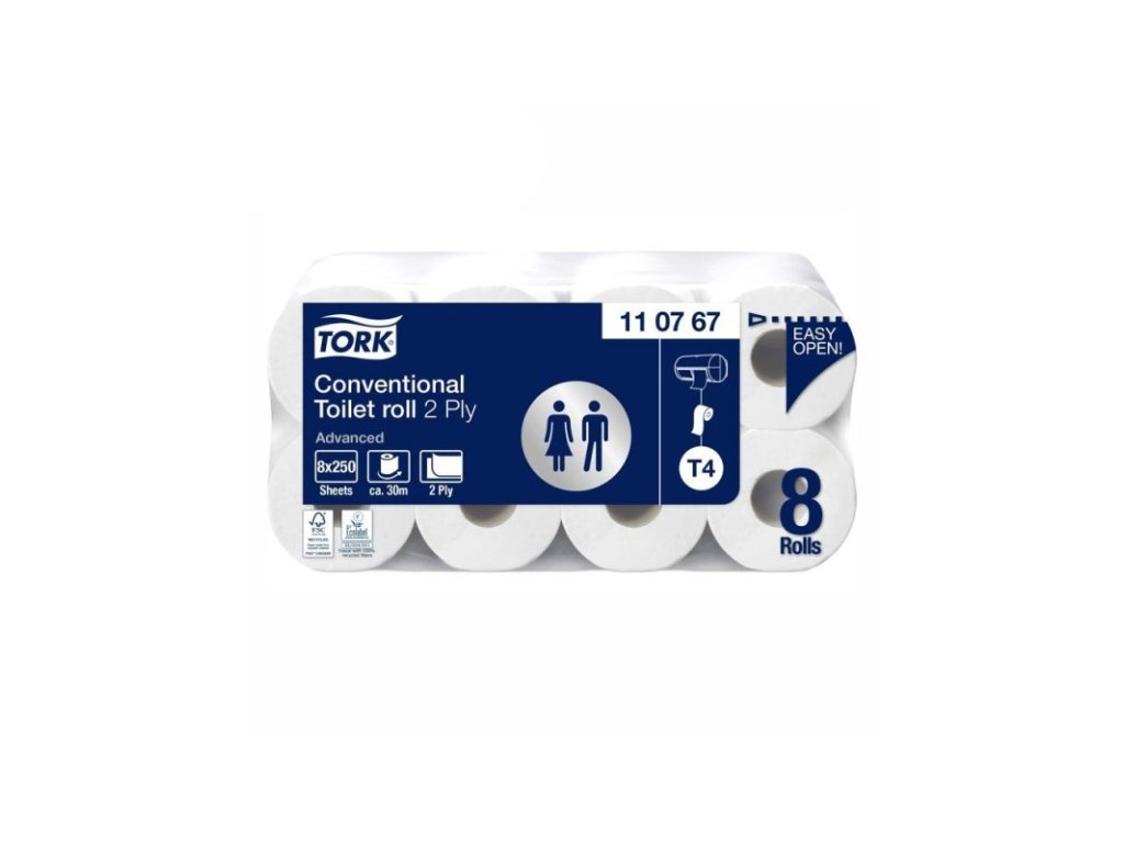 Tork 110767, jemný 2 vrstvý toaletní papír T4 Advanced, 8 roliček