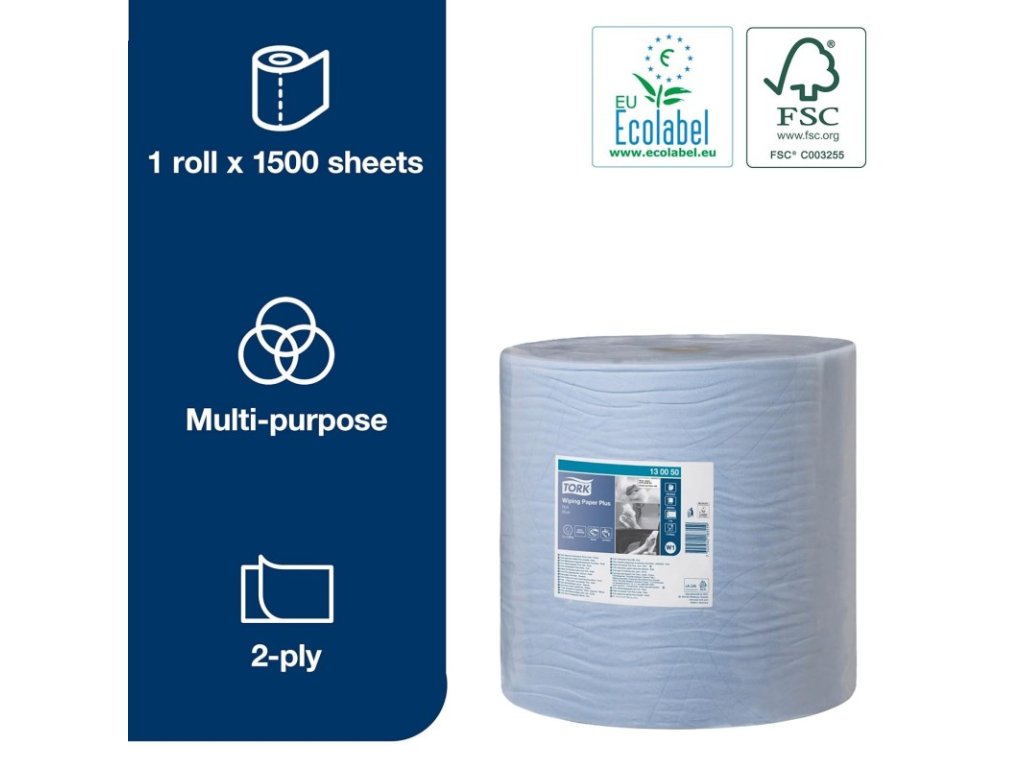 Tork 130050 modrá stírací papírová utěrka 2 vrstvá, 1500 útržků, návin 510 m, W1