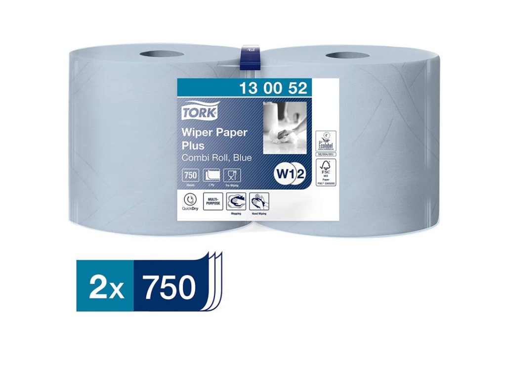 Tork 130052 utěrka Plus 2 vrstvá - malá kombi role modrá, návin 255 m