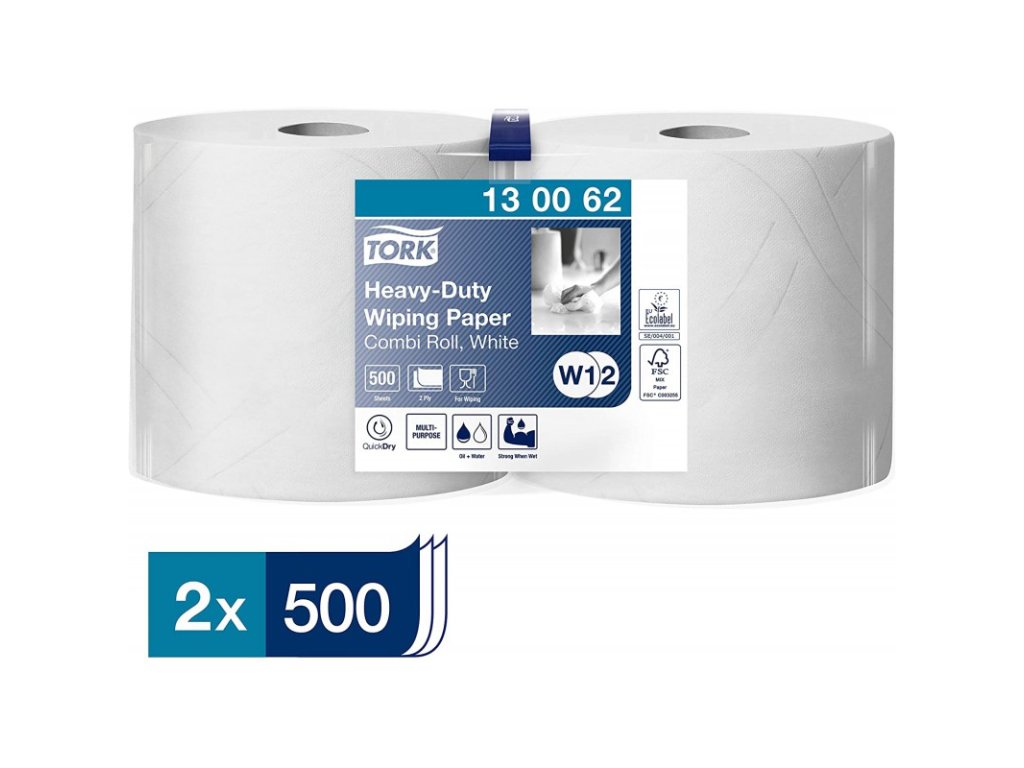Tork 130062 Tork Heavy Duty, malá papírová utěrka 2 vrstvá bílá, návin 170m, 500 útržků, W1, W2