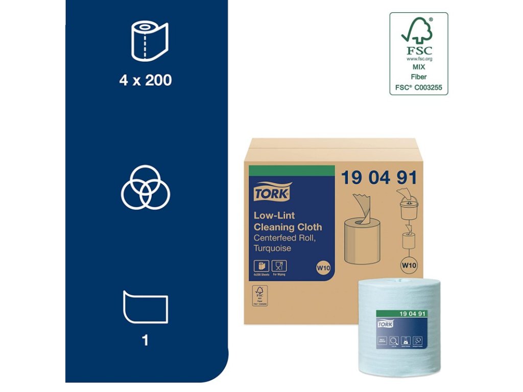 Tork 190491, Low-Lint čisticí utěrka v roli, 200 útržků, W10, karton 4x200 útržků