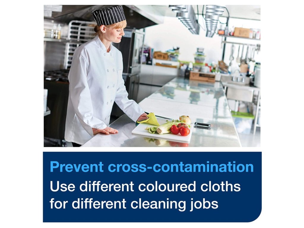 - Je k dispozici ve čtyřech barvách, což umožňuje rozdělení úkolů a minimalizaci rizika krížové kontaminace. Možné je i použití v zásobníku pro snadné odebírání jednotlivých útržků. - Víceúčelová utěrka - Odolná, pro opakované použití - Vhodná pro použití s čisticími prostředky - Certifikováno pro krátkodobý styk s potravinami a lidskými tkáněmi