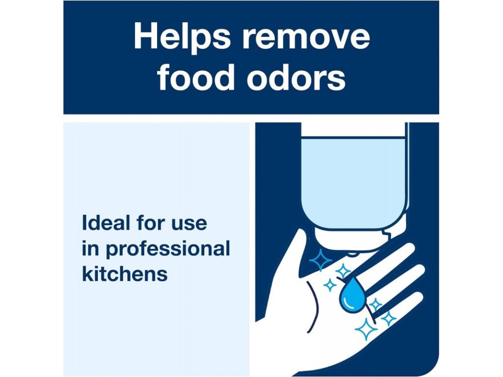 - Tork mýdlo na ruce neutralizující zápach pomáhá bránit přenosu zbytků jídla na rukou a zároveň pomáhá odstranit zápach potravin, jako jsou ryby nebo česnek.