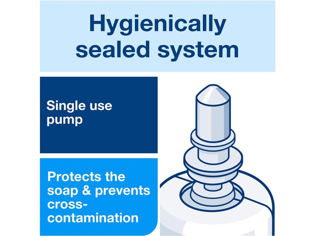 - Hygienicky uzavřené láhve s jednorázovými pumpičkami jsou zárukou hygienického mytí rukou a pomáhají snižovat riziko křížové kontaminace.