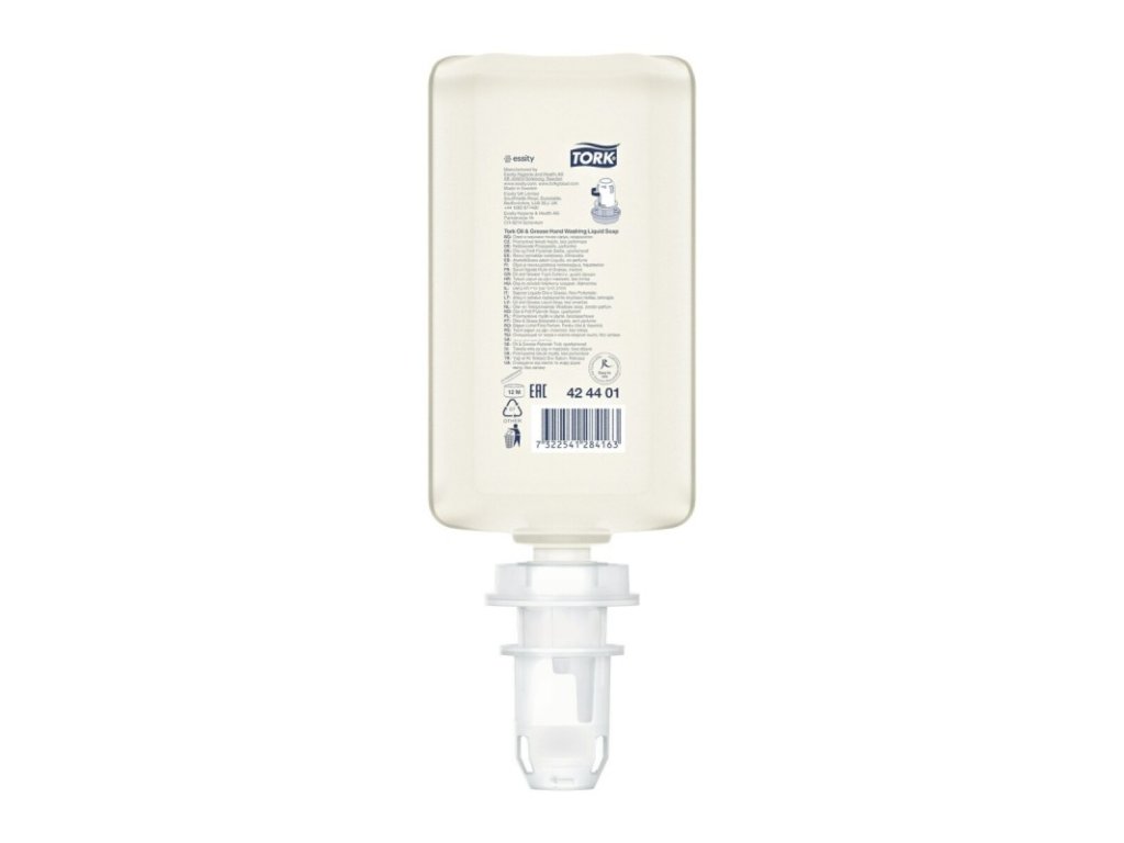 - Tork tekuté průmyslové mýdlo obsahuje složky rozpouštějící tuk, které velmi účinně odstraňují nečistoty, olej a mastnotu a jsou zároveň šetrné k pokožce.