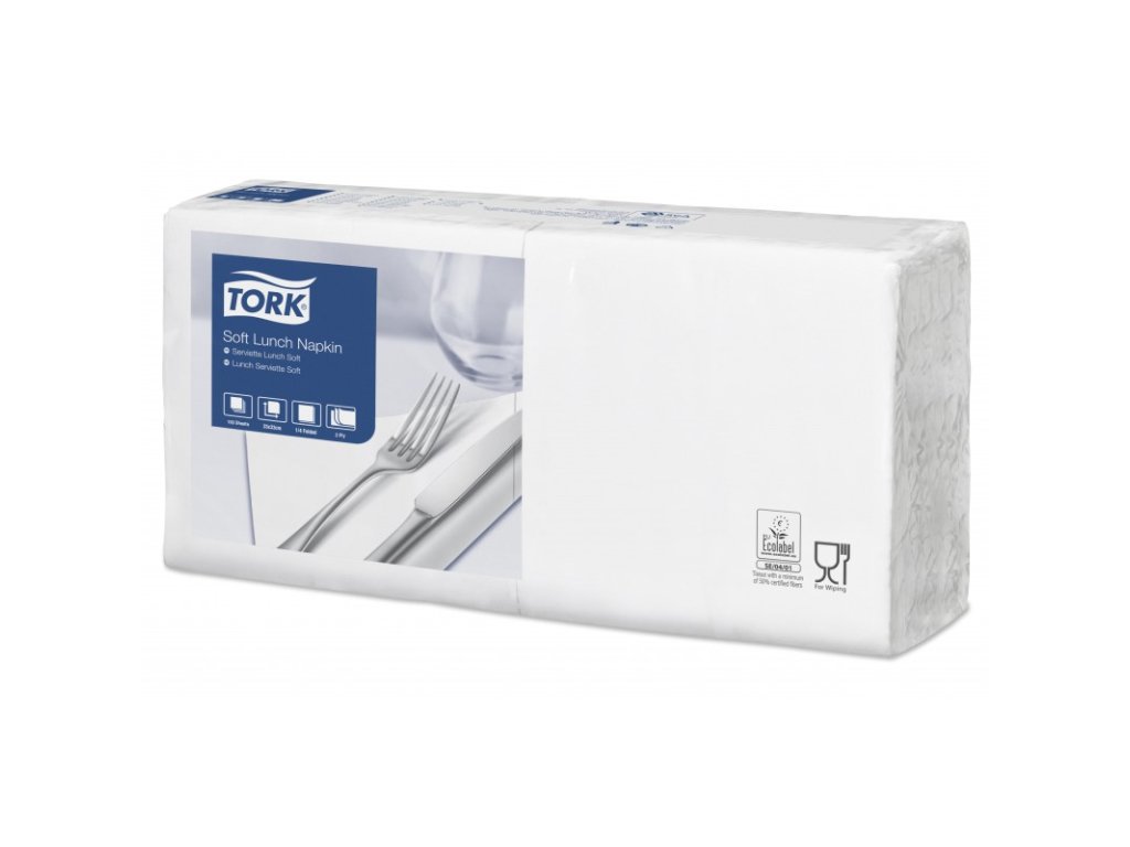 Tork 477414, jemný bílý ubrousek - oběd, sklad 1/4, 33x33 cm, 3 vrstvý