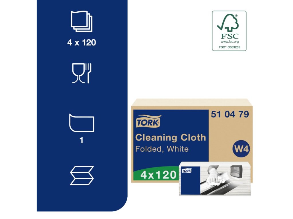 Tork 510479, jemná čisticí utěrka z netkané textilie, bílá, 130 útržků, W4