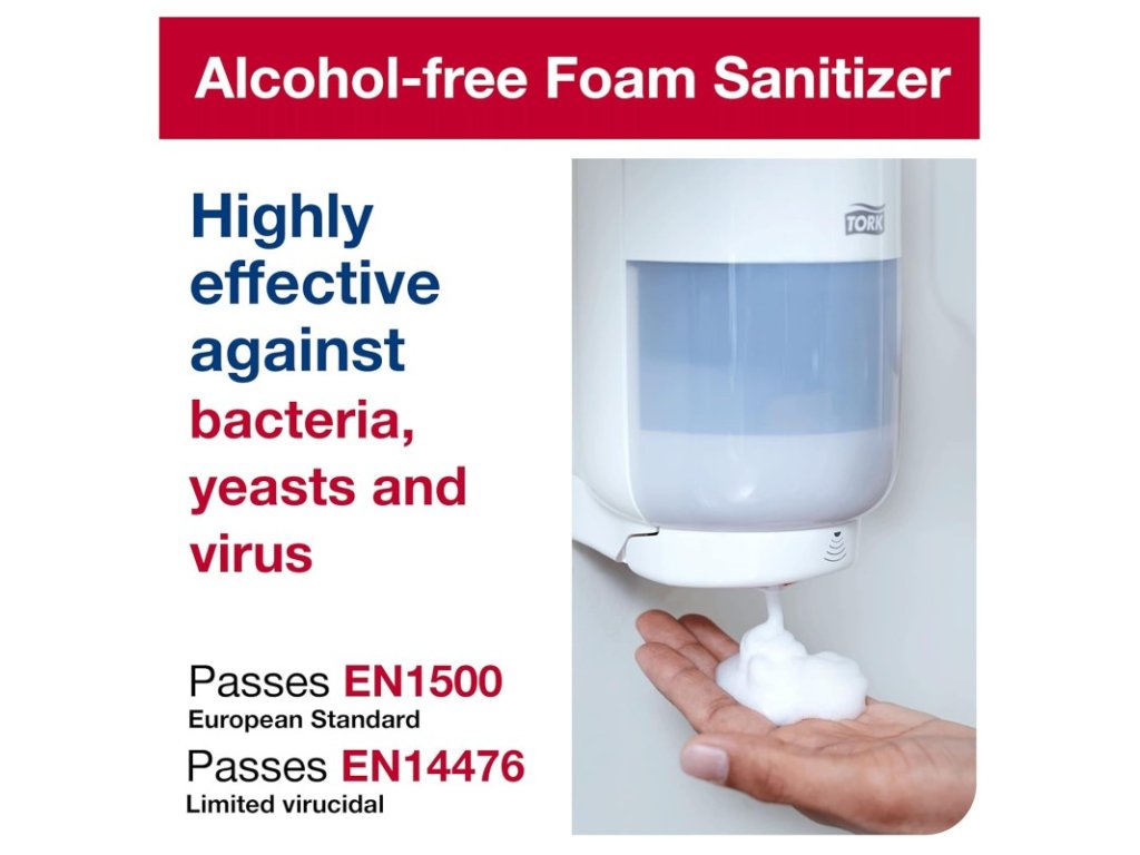 Tork pěnový dezinfekční prostředek bez alkoholu s obsahem kyseliny mléčné je perfektní volbou pro hygienu rukou bez použití vody v případech, kdy alkohol není vhodnou alternativou. Přeprava produktu a manipulace s ním je snadná, protože není označen žádnými varovnými symboly. Obsahuje 100 % složek rostlinného původu a vodu a je 100% biologicky odbouratelný, proto se jedná o zodpovědnou volbu.