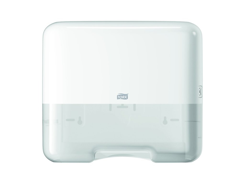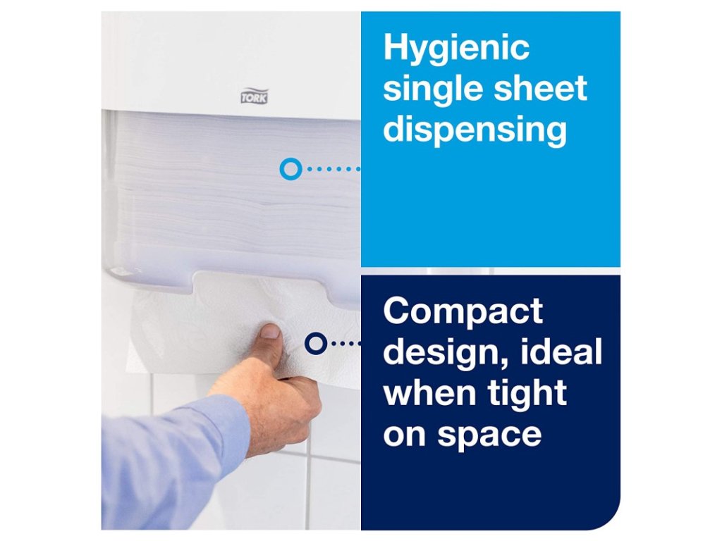 - Tork Mini Dispenser 553100 for zigzag and layer-folded paper hand towels, wall-attachment design - compact H3