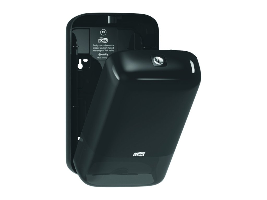 - Tork 556008 Folded Toilet Paper Dispenser T3 / Plastic Dispenser Suitable for T3 Folded Toilet System Refills / Wall Mounted Dispenser in Black