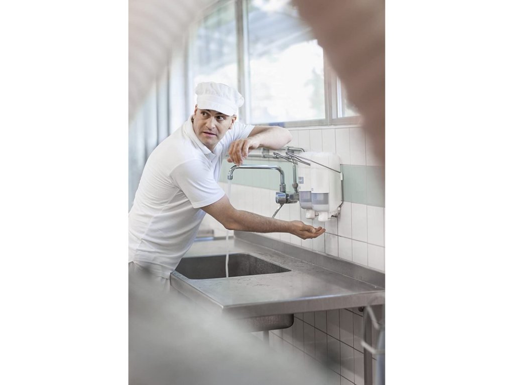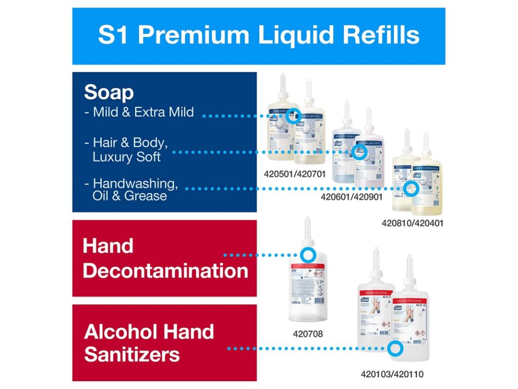 - Tork Liquid Soap Dispenser with Arm Lever for Liquid Soap and Hand Sanitiser, Elevation - 560100 - Hygienic, Leak-proof S1 Dispenser System, White