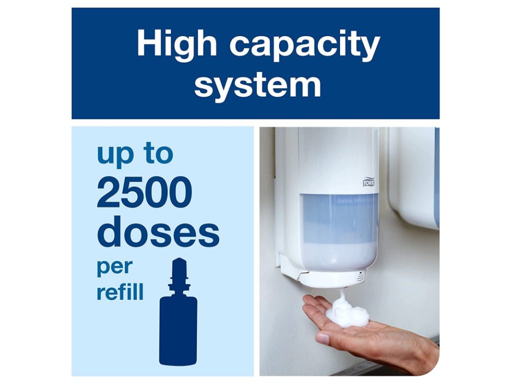 - Dalším přínosem uzavřené náplně je, že riziko znečištění mýdla při doplňování je vyloučeno, uzavřená lahev náplně také zajišťuje originální vysoce kvalitní mýdlo Tork.