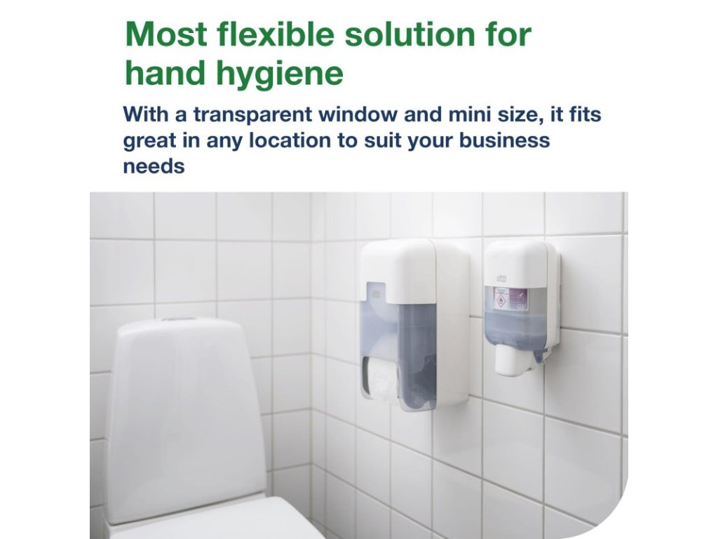 - Více hygienických potřeb s 1 systémem – široká škála náplní mýdel a dezinfekčních prostředků v pěnové, tekuté nebo gelové formě, které vyhovují potřebám vaší firmy a uživatelů.