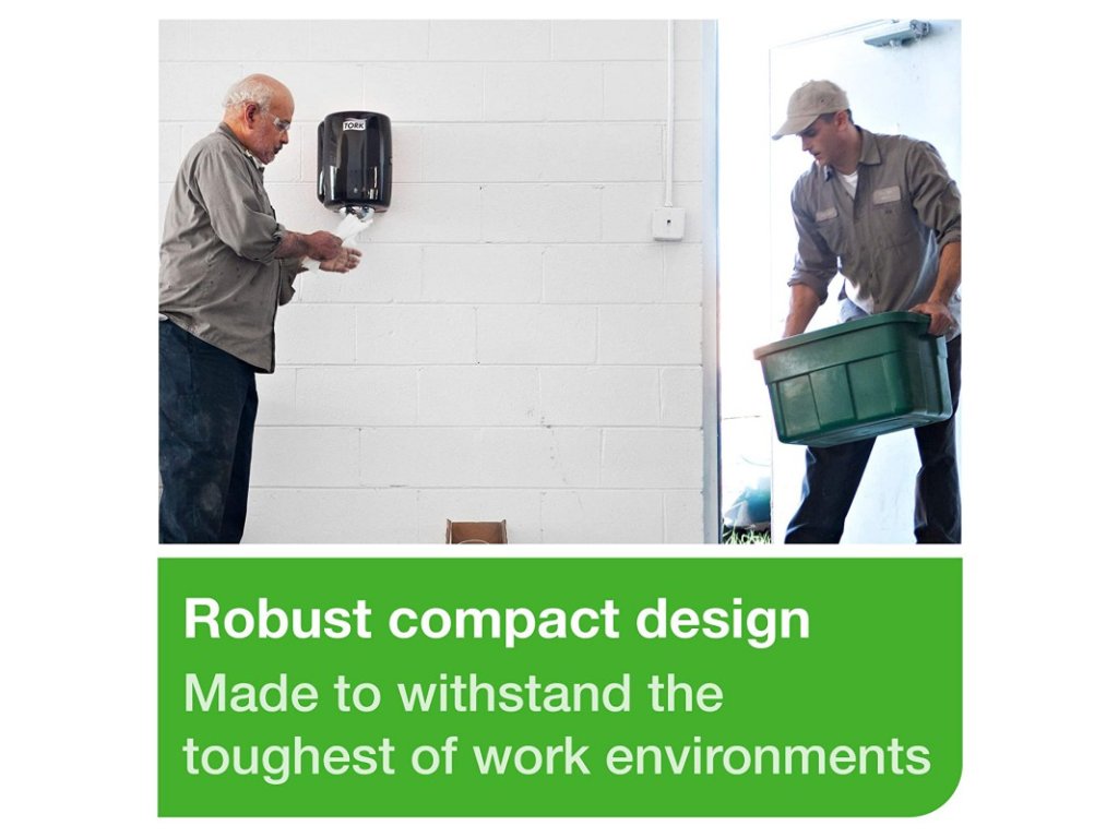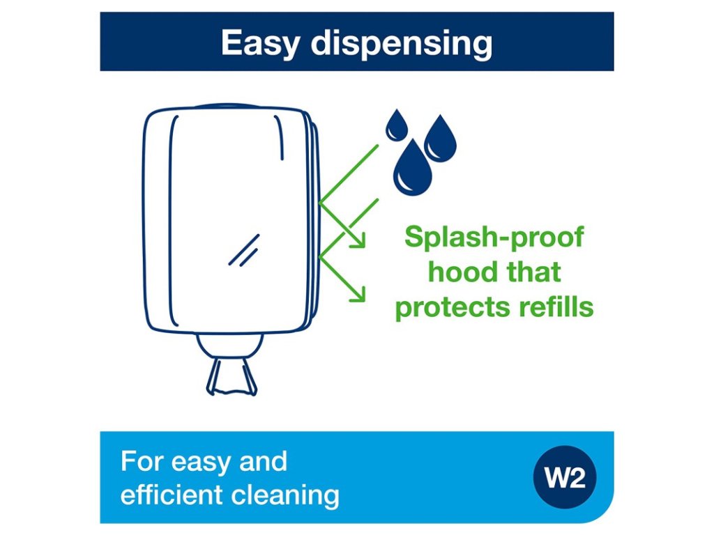 - Hygienický zásobník pro Maxi role se středovým odvíjením, který je optimalizován pro obsluhu jednou rukou.