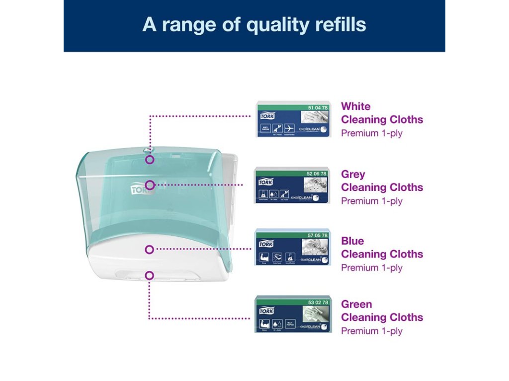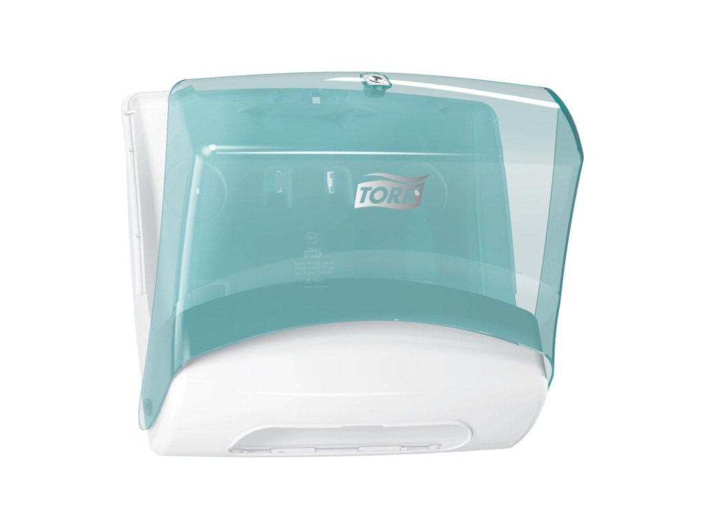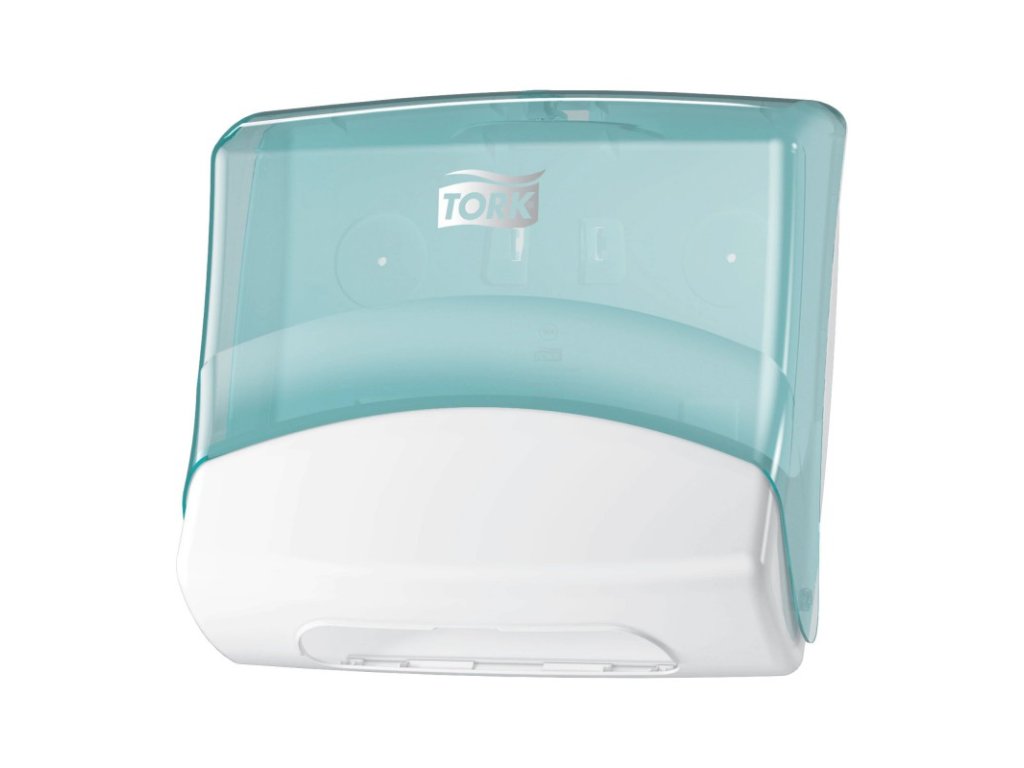 Tork 654000, zásobník na skládané utěrky Bílá/Tyrkysová , systém W4