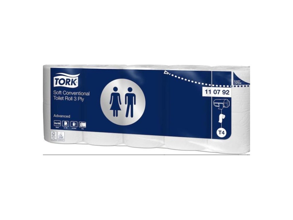 Tork Advanced 110792 toaletní papír, třívrstvý, 150 útržků, T4, 10 roliček