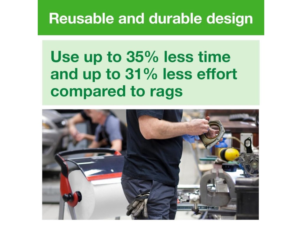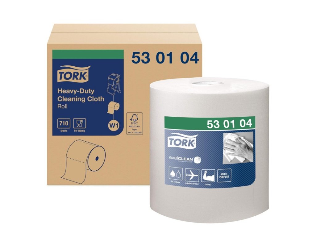 - Víceúčelová Tork Heavy-Duty čisticí utěrka je vysoce absorpční, pevná a velmi trvanlivá, vydrží hrubé drhnutí, aniž by se roztrhla. Funguje v kombinaci s většinou rozpouštědel a rychle a účinně odstraňuje olej, mastnotu, vodu a nepoddajné skvrny a chrání přitom ruce před horkem a kovovými úlomky.