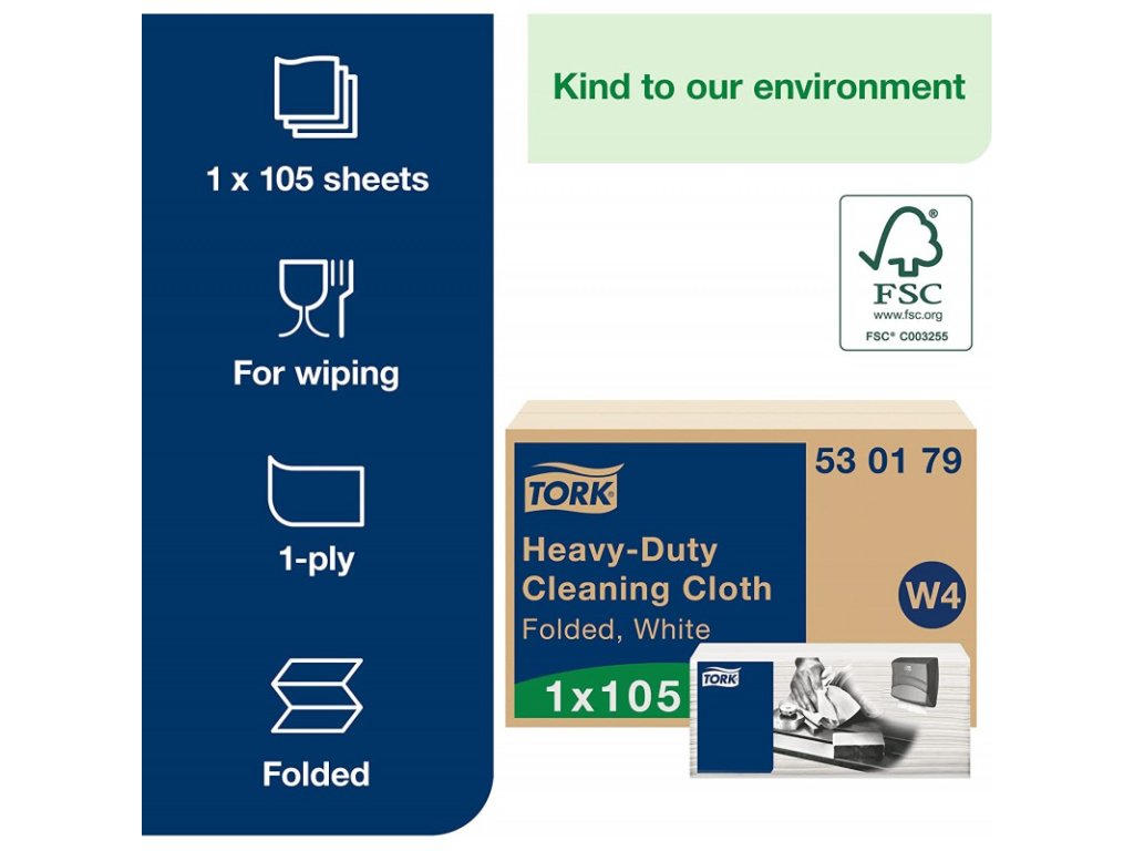 Tork Heavy-Duty 530179, skládaná čisticí utěrka Premium, W4, karton 4 x 105 útržků