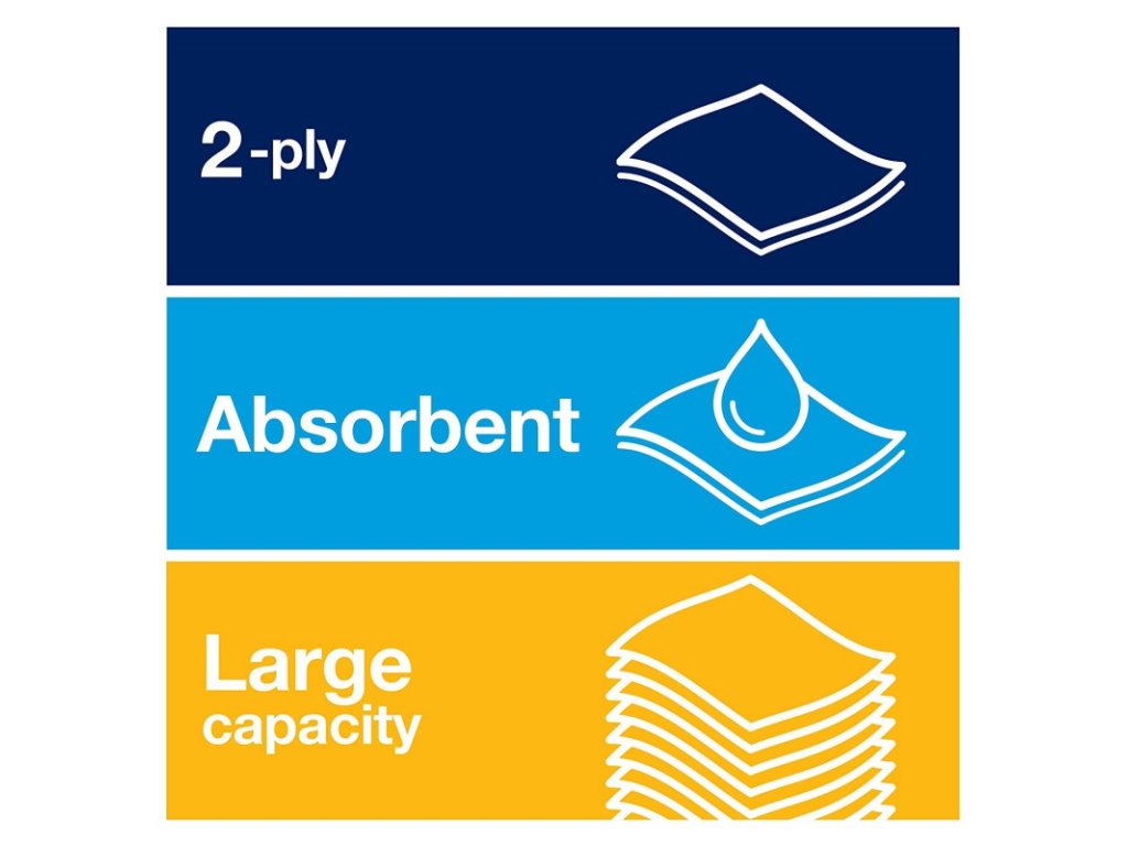 - Velký, měkký papírový ručník, který dává pocit vysoké kvality a zanechá trvalý dojem
